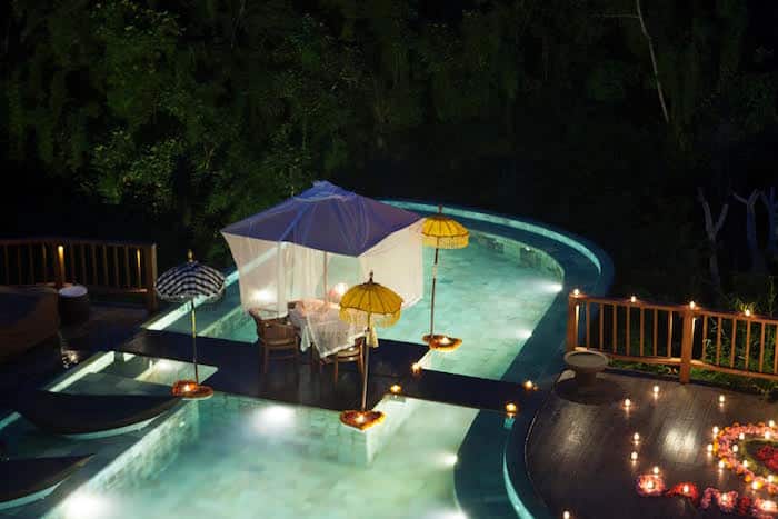 As its name suggests, La View offers stunning views and three private dining experiences. The first is a private infinity pool dining experience with a floating dining platform adorned with candles and perfumed flower blossoms. Called Bird Nest, the second experience will have you lovebirds set up in a bird nest-like enclave with views of the surrounding greenery and Ayung river valley. Another treetop experience can be found in the Eagle Nest, a private nook enveloped by flickering candle lights and blossoms, looking out to the woodland greenery and river valley.