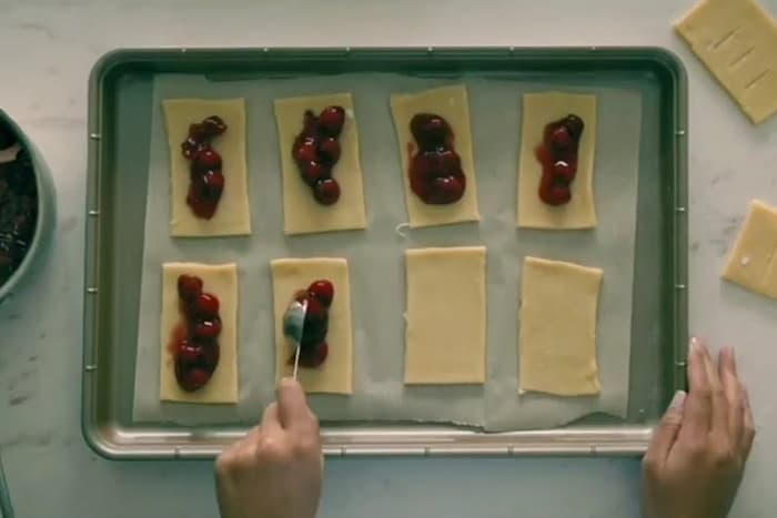 Lara Jean (played by Lana Condor) is known for her love of baking in Netflix’s hit teen romance trilogy: To All The Boys I’ve Loved Before. In the second instalment, P.S. I Still Love You, Lara whips up mouth-watering cherry turnovers for her boyfriend Valentine Peter Kavinsky (Noah Centineo). Light, buttery and flaky, these pastry pockets are filled with a sugary cherry reduction. Not a fan of cherries? Switch them out for a fruit of your choice like strawberries or apples – it’s a heavenly sweet treat either way.
