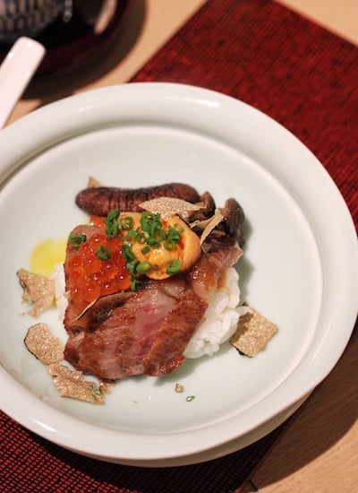 Nami A4 Saga Wagyu - Shangri-La Hotel SingaporeAnother specialty of NAMI is the Japanese Saga Wagyu Beef Sirloin A4, Sea Urchin, Rice, Chef Akiba’s Special Sauce, and Seasonal Truffle (available a la carte at $65). Accompanied by Hokkaido ikura, shimeiji and shitake mushrooms from Kyoto, and shavings of French black truffles, it’s the epitome of Japanese culinary luxury. It’s also everything I love in a bowl, so yes, I was happy (I’m sure you’d be too).