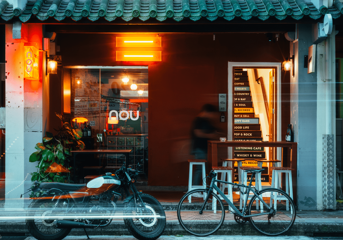 NOU Noodle Bar offers an immersive dining experience set in a neon-illuminated space adorned with art by the esteemed Singaporean artist Hor Kwok Kin. The ambiance pays tribute to local culture, creating a backdrop that is both contemporary and deeply rooted in tradition.