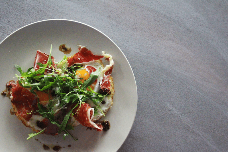 Sunny Side Up Farm Egg, Maitake Mushrooms, Parma Ham, Truffle Dressing