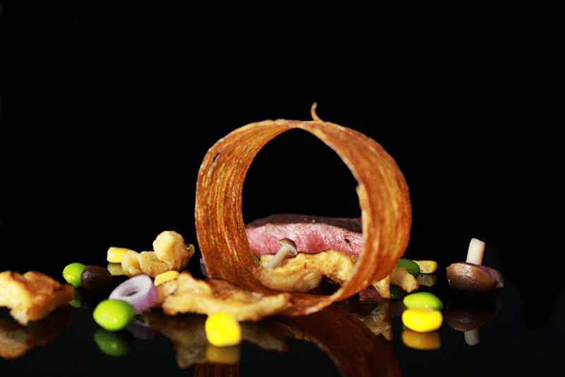 From the distinct flavours and textures like silky, buttery foie gras, and crunchy candied bacon to the more befuddling ones like protein that you can’t identify pork from duck, most of the food is cubed for easy consumption with just a fork or a spoon.