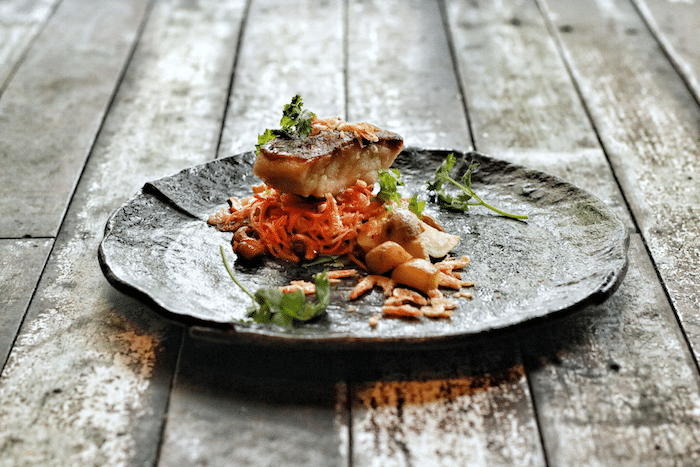 To take the edge off the wasabi, the Vitel Toné ($25) is a comforting choice, with cold-cut veal loin, tuna mayonnaise, and pickled purple cabbage atop crunchy fried potato bread. While it seemed out of place, we were pleasantly surprised to find that the tuna was the ingredient that binded the bread, cabbage, and tender sous vide veal together. The Avocado Jumbo Rump Crab Salad ($25) is as refreshing as it promises to be, with crispy kale, charcoal bread, and salted egg yolk crumble lending some weight to the the light salad. Full of contrasting textures and flavour, it’s a great start to the meal.
