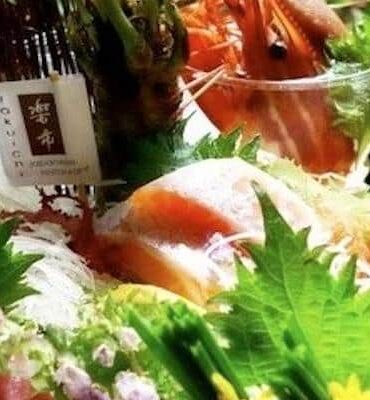 Japanese sushi chefs in traditional white uniforms preparing fresh fish at a sushi counter with wooden trays of tuna, salmon, and seafood for new restaurants in Singapore