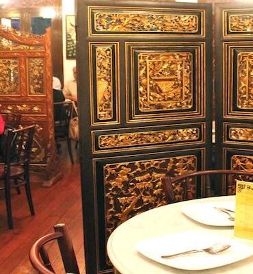 Palace Garden restaurant interior at Grand Lisboa Palace Macau with floral mural and chandelier