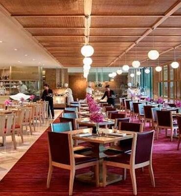 Palace Garden restaurant interior at Grand Lisboa Palace Macau with floral mural and chandelier