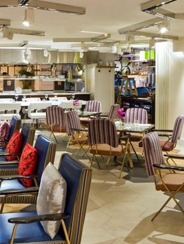 Palace Garden restaurant interior at Grand Lisboa Palace Macau with floral mural and chandelier
