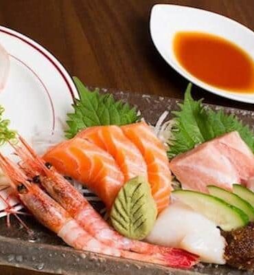 Japanese sushi chefs in traditional white uniforms preparing fresh fish at a sushi counter with wooden trays of tuna, salmon, and seafood for new restaurants in Singapore