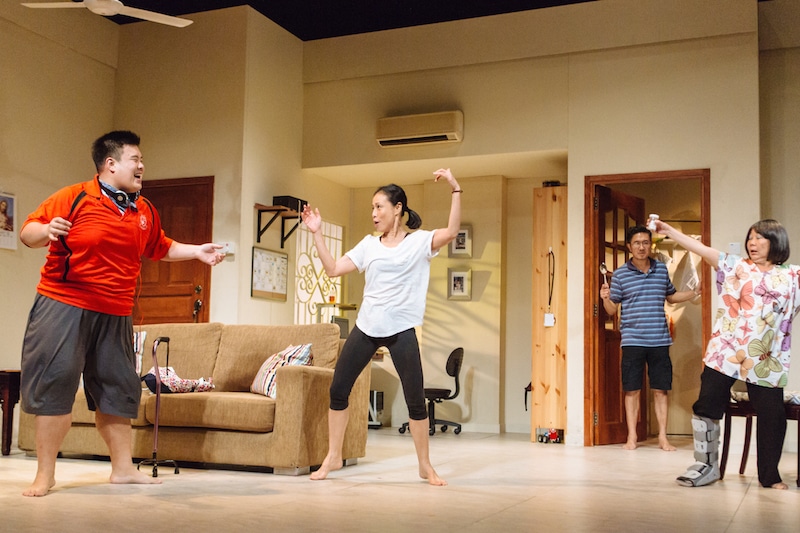 As the play progresses, so do the challenges — bible-toting grandma Sue (Neo Swee Lin) is coming for a weeklong stay, Josh’s caregiver quits on short notice, and Lisa grows increasingly vocal in her unhappiness at the limitations and lack of attention she receives. The effort of keeping equilibrium seems to take the greatest toll on his mother. It’s all Tami can do to tipple over into her own free fall as she struggles to keep the family afloat. Her fierce love and protection of Josh threatens to tear her own marriage and relationship with Lisa apart, yet it’s an impossible problem to which there are no solutions.