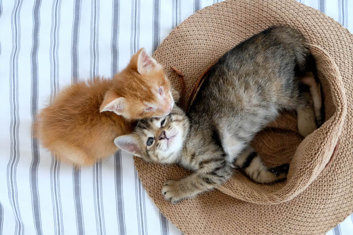 The same way you like to come back home to a safe space you can call yours, kittens too require a safe space or safe room – commonly referred to as “base camp”. Prepare a litter box, litter and a scoop for cleaning; enough food (more on that later) as kittens tend to get hungry every few hours; bowls for food; a bowl of fresh water that’s available at all times; and a soft comfortable bed (a large fluffy towel or blanket it can snuggle in; if you have a large box, place the towel or blanket in it). A variety of cat toys will come in handy as you may not be around 24/7 to keep it occupied, and most kittens are curious and playful at their young age. Also, all cats will scratch, so have something that they can indulge that behavior in, like a vertical scratching post and a horizontal scratch board.