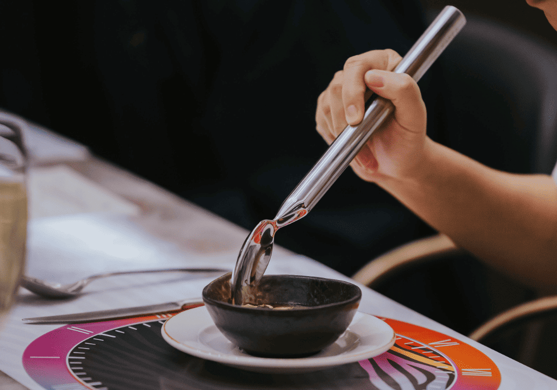 The second course features the delectable Foie Gras Royale, which sees foie gras folded into eggs and adorned with black winter truffles. Its velvety chawanmushi-like consistency creates a sensation that delicately melts in the mouth, providing a glimpse into the culinary journey experienced by individuals grappling with the challenges of SMA, as their condition advances. Try eating this delicate dish with a unique oversized weighted spoon (500g) simulating the daily struggle faced by those with SMA . It’s a poignant reminder that what may seem routine to others can pose a significant challenge for those navigating life with SMA, transforming the act of eating into a profound exploration of resilience and adaptability.