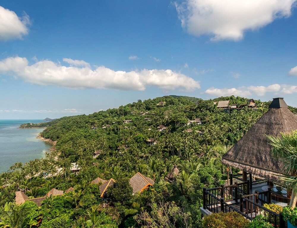 Perched on a tropical hillside overlooking the Gulf of Thailand, a private infinity pool with a foliage-fringed outdoor deck await next to your one-bedroom villa. Outfitted in contemporary Thai-style furnishings, expect a palatial bedroom and bathroom with an al fresco bathing experience, as well as a sprawling outdoor living area made for lounging.