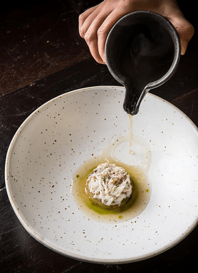 Take the Goat Tartare & Fermented Rice Coconut Crepe, for example. The Western interpretation of local goat brings a leaner rendition to the French classic, flavoured with an aromatic masala aioli and paired with traditional appam (fermented rice crepe). And forget Impossible Meat, Chef Joe’s Curry Puff is filled purely with banana blossom, but tastes deceptively meaty and peppery, perfectly complemented by sweet black garlic and banana sauce.