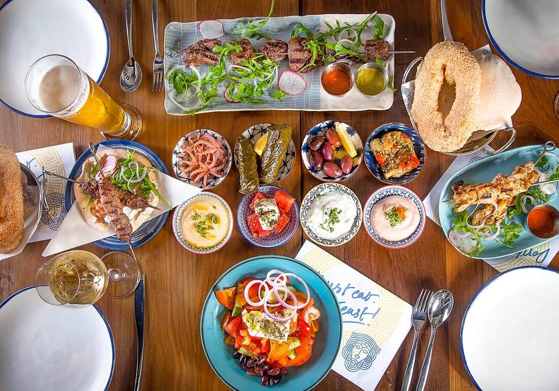 Aesop’s is the second generation of a restaurant from Sydney previously run by John’s father, recreating the lively party atmosphere inspired by summer on the Greek islands. It’s apparently a favourite for birthdays, hen’s parties, and ouzo-fuelled company functions as well. And really, the vibes are perfect. Moving away from typical blue and white interiors in Santorini likeness, you find dim lights, long communal tables, stucco walls, large Greek columns and arches, and a large ‘OPA!’ neon sign hanging by the entrance.