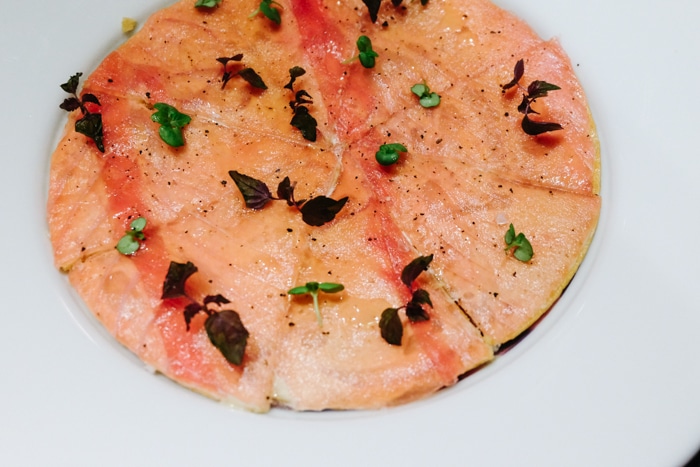 For the sake of our bulging bellies, we had to tone it down a notch. Order the restaurant’s famous AB Pizza Tuna ($25), which was purportedly created to get Americans to eat raw fish. As much as I wouldn’t call this a pizza per se, it is delicious, combining the lightness of thinly-sliced fresh tuna and the crackling crust with a slather of umami-laden aioli. I also very much enjoy the 48-Hour “Sanchoku” Short Rib ($48), which is braised so long it falls off the bone with a touch of our forks, while retaining a delicious tender juiciness, along with the elegant Hokkaido Scallops ($28), to be eaten with kiwi fruit, caviar, and truffle yuzu.