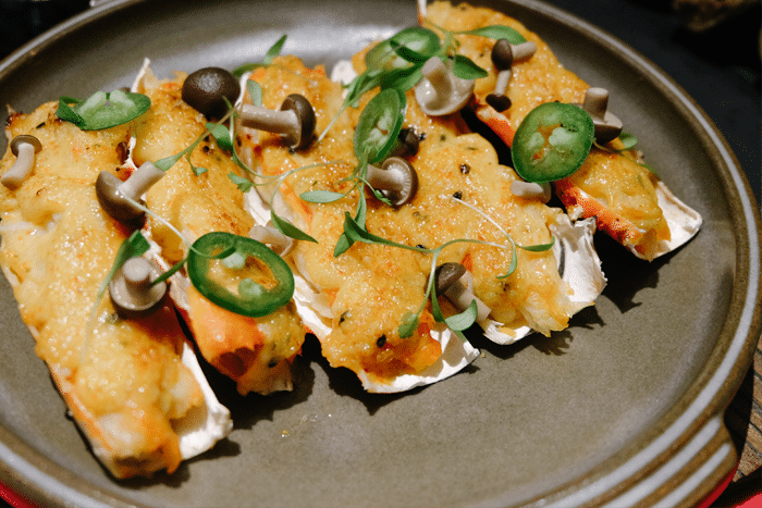 Around this time it becomes clear that many of the dishes at the restaurant would be relatively rich, saucy, and mostly spicy, a testament to Chef Akira’s Korean heritage. The hot Grilled Alaskan King Crab ($42) is a myriad of flavours and textures, the sweet and delicate leg flesh accentuated with creamy tobiko-laced ‘dynamite’ sauce to become quite simply, explosive. Eel makes its appearance with the curiously-named Brother from Another Mother ($30), an indulgent maki roll made with brown sushi rice and featuring two types of eel, one in a soy-sauce marinade and the other fried-tempura style. Adding on to the decadence? A lump of shaved torched foie gras (served with gochujang miso, no less) and ponzu mayo – definitely not for the faint of heart.