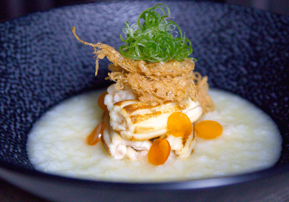 If you’re lucky, Pepe will surprise you with his signature congee with espardenya – the Spanish name for the intestines of a sea cucumber, which tastes a lot better than it sounds. He grills this on the plancha until just slightly charred to retain its springy bite – somewhat like squid, really – and serves it with a warm dashi porridge with mounds of egg floss, spring onions, and bonito flakes. You might even get the fabulous shiso leaves tempura, fried to a pale crisp and filled with mustard and a mouthful of fragrant olive oil tomato tartare in between.