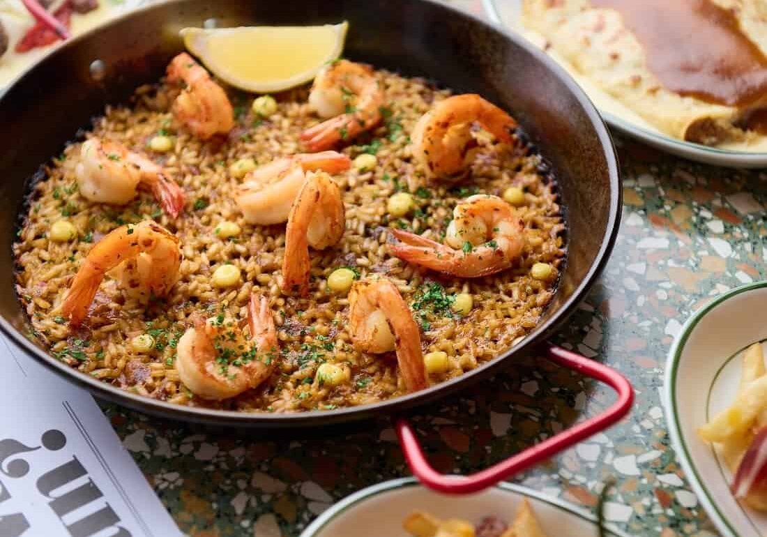 Top Image: Paella de Gambas al Ajillo