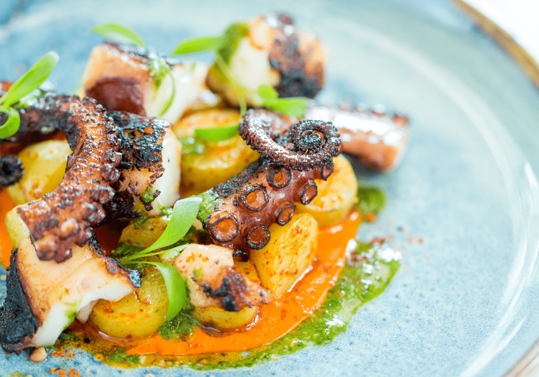 The map is an apt metaphor for Monsieur D’s sharing and grill menu, which takes us on a culinary jaunt through Portugal, Spain, Italy, and France – the vibrant flavours of the southwestern coast. Cooling off at the lounge, we enjoy a first taste of this with the Riviera Chic, a summer-kissed cocktail of white wine, elderflower liqueur, and champagne.