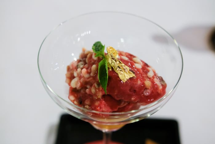 If Blue Lagoon is known for one thing, it would be Somsack’s one-year-old insect menu, which sees several ant creations (think black ant eggs in coconut soup and red ant egg tuna salad) as well as a grasshopper tagliatelle. Having already sampled so many dishes, I opt for his red ant egg raspberry sorbet dessert, which the team makes from scratch. As for the taste of the red ant eggs, they are creamy, crispy, and taste like a certain je ne sais quoi – you’d have to try to know. Bizarre, I know, but it is part of Lao culture.