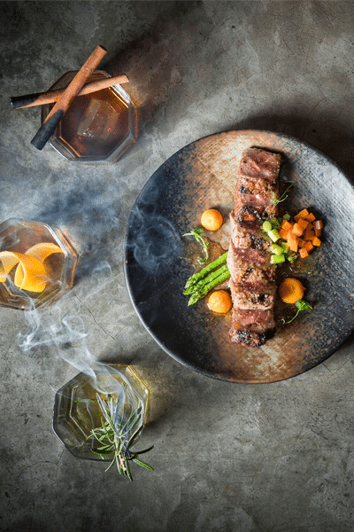 You’ll find his repertoire – modern Modern European dishes with an Asian take – to be spiked with hints of spices and herbs from his homeland. He does a delicate Pan-seared Foie Gras dish that sits on a bed of small spring onion crêpe (think Taiwanese pancakes) and spectacular lemongrass peanut sauce alongside diced Spanish onions and mango jelly in a trinity of sweet, spicy, and savory. Try the Freshwater Prawns that are grilled on the Josper for a delicious charred crunch and lightly dusted with zingy lemon powder. A squeeze of ruddy saffron rouille and prawn jus adds a burst of spicy richness. When you’re done with the meat, grab the head and suck for a hit of umami.