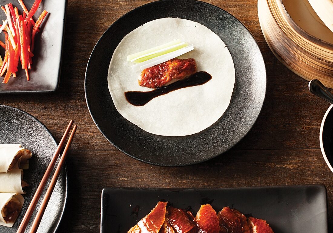 A signature Pluma Iberico Pork (S$48) comes glazed with yellow mountain honey, barbecued in a complicated process that involves meticulous rounds of temperature adjustments for a deep charred flavour. It’s only topped by their iconic Apple Wood Roasted Peking Duck (S$108), presented and carved by your table to create quite the spectacle. We’re told they go through 20 of these ducks a day, so that’s got to mean something, right? Malaysian ducks are aged for 42 days and cured in a special marinade, creating a fatty skin that’s almost crystal-like, if that makes sense. The meat is best enjoyed cradled in the thin pancakes with crunchy cucumber, scallions, and a special hoisin sauce that’s mixed with peanut butter.