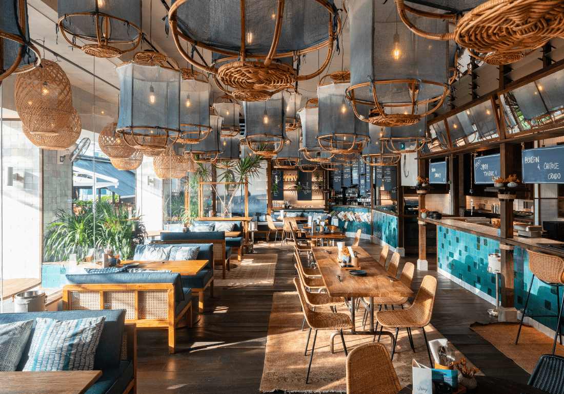 Unlike its name, though, there is nothing gypsy-like here. Instead, its new storefront at One Fullerton could be described as wabi-sabi meets earthy opulence. Expect nautical hints with blue and white elements, contrasted against warm rattan and wood furnishings. The standout piece nonetheless, are the imposing ceiling fixtures with indigo hand-stained fabrics that hang from the high ceiling.