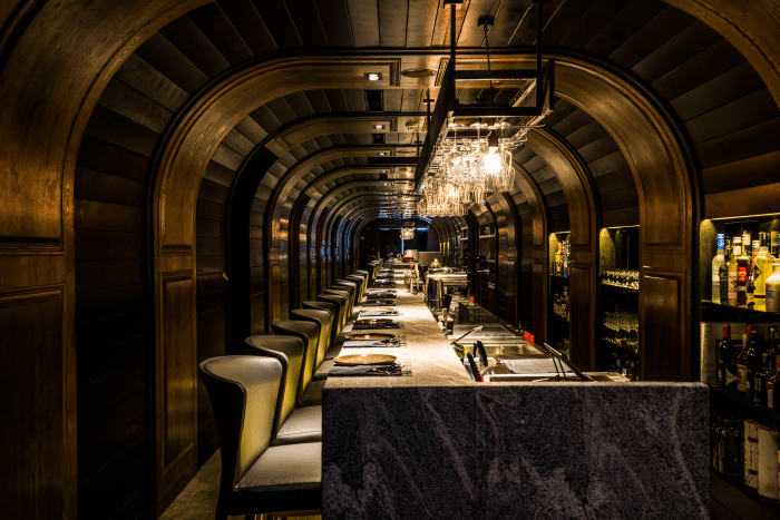 Le Binchotan, with its arching ceiling and ubiquitous use of wood, stone and metal, looks like a luxe cross of a cellar and the inside of a plane. Like the latter, the 36-seater space is much longer than it is wide – calling to mind Jeremmy’s earlier days as an air steward on Singapore Airlines. It’s here that the result of his training (including stints at Iggy’s and Jewel Box, where his mentor was Hiroki Yoshitake of the Michelin-starred Sola in Paris) come to fruition.
