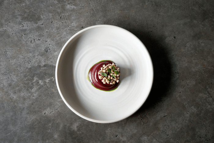 When you order the seven-course menu, you will get the truly delicious Carabinero Prawn, which if you’re unaware, is highly coveted for its deep-red colour and strong yet sweet flavour. It’s cooked a la minute with prawn oil and butter, then paired with butternut squash puree and curls of kaffir lime leaf for an edge of bitterness. That’s not all too. The dish comes with housemade sambal Korean rice, lovingly sheathed under some charred Brussel sprout leaves.