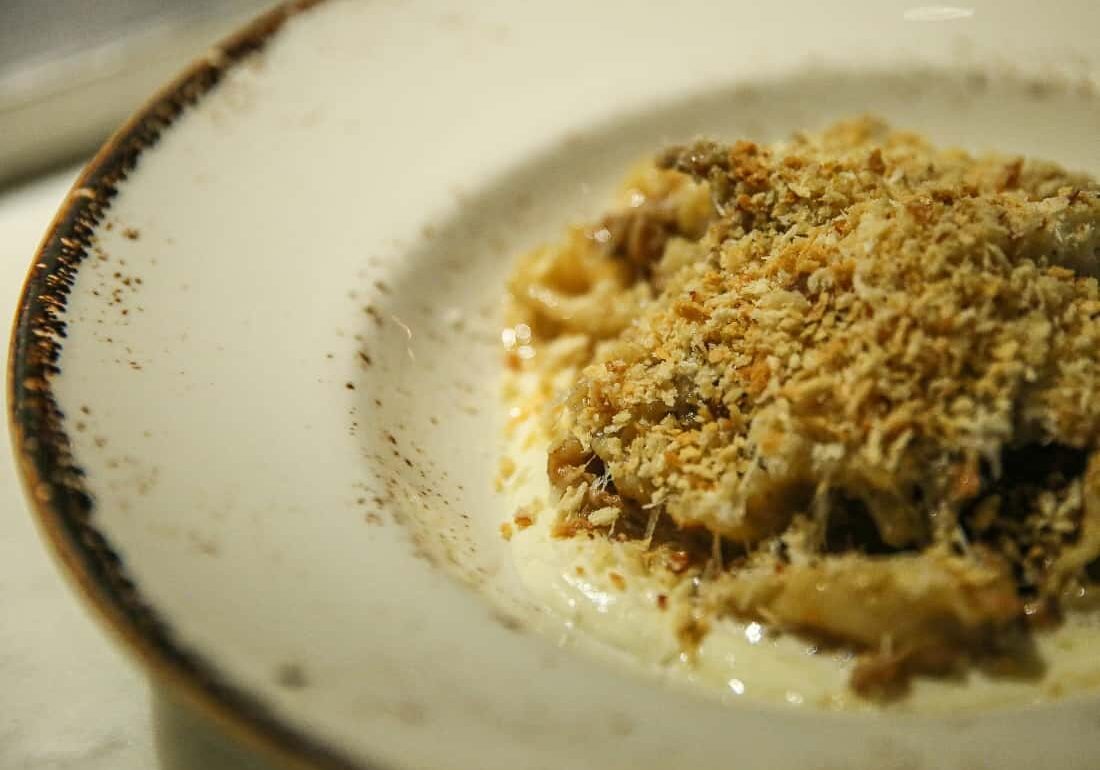 Reginette (S$34), or “little queens” in English, was named after Princess Mafalda of Savoy. Quite the regal pasta originating from Naples, it’s normally enjoyed with lighter sauces, as Head Chef Vikk Chua has cleverly done. Swapping out the typical tomato-based ragù, Chef has gone for a lighter ragù bianco, made out of white peppercorns and white wine, with fall-apart lamb chunks. The ruffled edges on the pasta add a beautiful texture, enriched by buttery mascarpone and garlicky pangrattato.