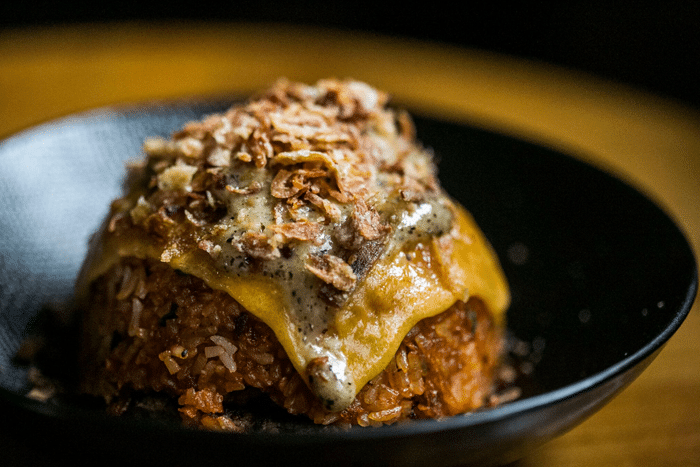 Potato Head would seem an odd place to order rice, but there’s no arguing against its two new creations. The loaded Burning Rice ($17) is like an Asian rendition of the Hawaiian loco moco – there is the beef patty and rice stir-fried with gochujang, dashi mayo before being topped with cheddar cheese and crispy bawang goreng (Indonesian-style fried shallots). As its name suggests, you can feel your tongue tingling from the spice. But who cares, it’s freaking tasty.