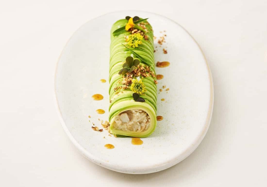 For a more refreshing bite, opt for the Mangrove Crab Tartine (S$33). These chunks of local crab come rolled sushi-style in avocado slices, then drizzled with yuzu vinaigrette. Each silky, tangy roll melts beautifully on the tongue.