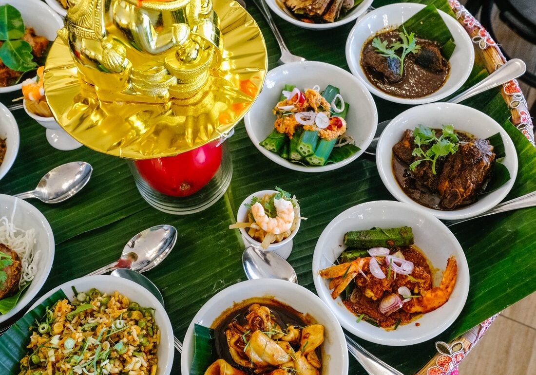 It’s an extravagant spread of delights: soups, starters, and mains all presented on banana leaves. Bak Wan Kepiting is a rich broth of bamboo shoot and golf ball-sized meatballs, and Itek Tim is an appetisingly tangy soup of duck, kiam chye, assam skin, and plums. Both are rich and savoury, like my grandma’s soup. We also love the Nasi Ulam, a cold rice salad, for its light herbiness and refreshing feel.