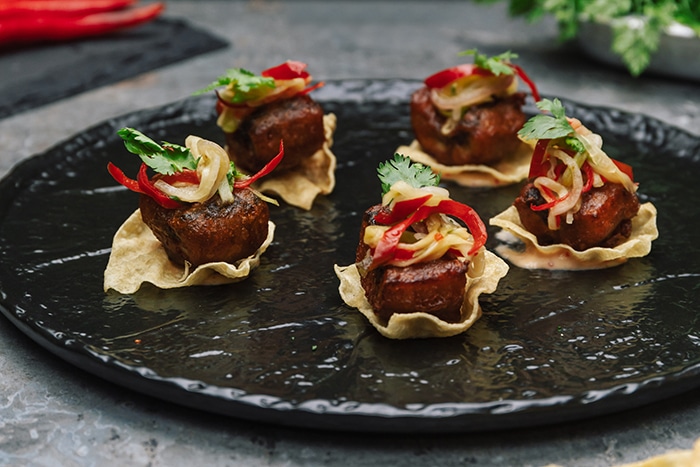 The ‘Som Tum’ Unagi Taco (S$15++) is a marvellous blend of four culinary cultures in one dish: Thai, Mexican, Indian and Japanese. Light and crispy pappadums, taking the place of corn tacos, hold the fluffy unagi topped with fresh green papaya salad. The saltiness from the crisps balances the sweetness of the unagi bites and tangy salad beautifully, making it a lip-smacking treat. The pappadums do get soggy quite quickly so eat ’em fast.