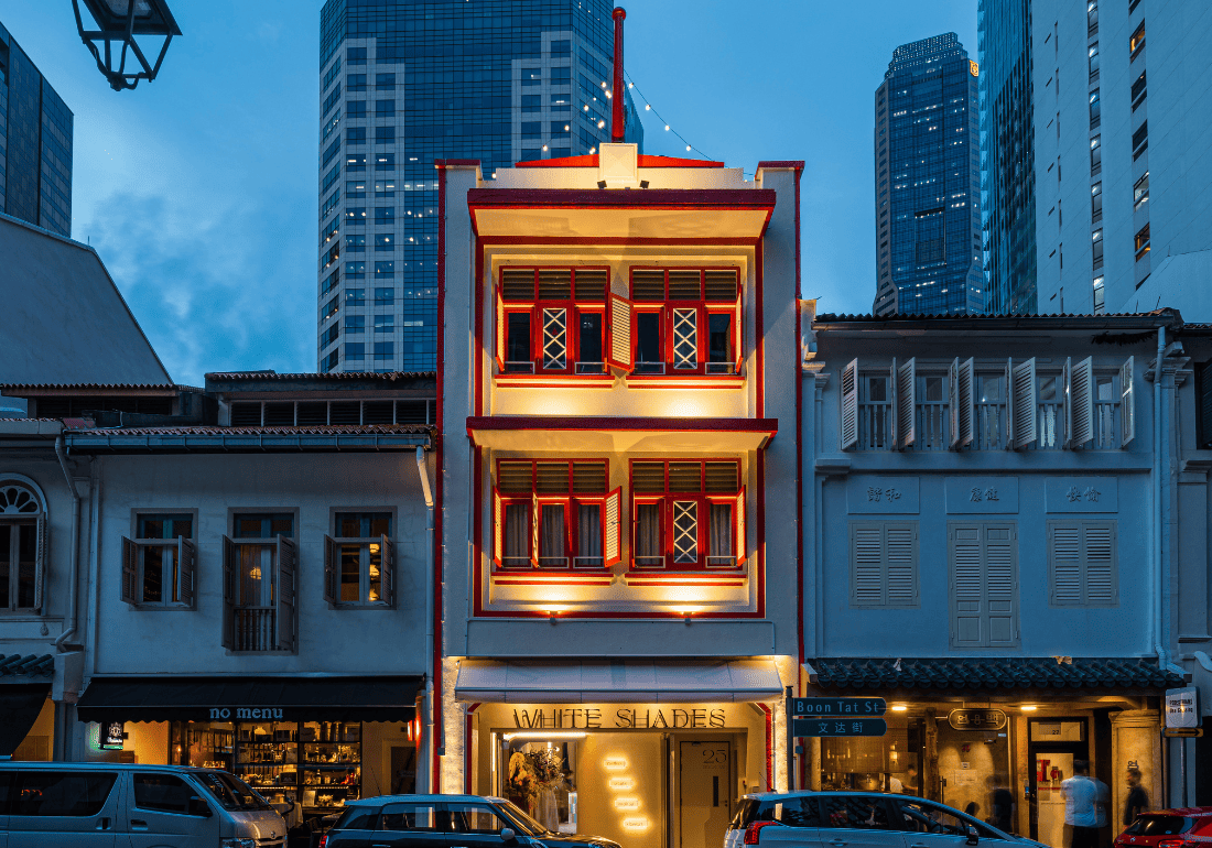 White Shades is located at 25 Boon Tat Street, Singapore 069622, p. +65 8575 8578. Open Mon-Sat 11am to 12am (Level 1), 5pm to 12am (Level 2 and Level 4).