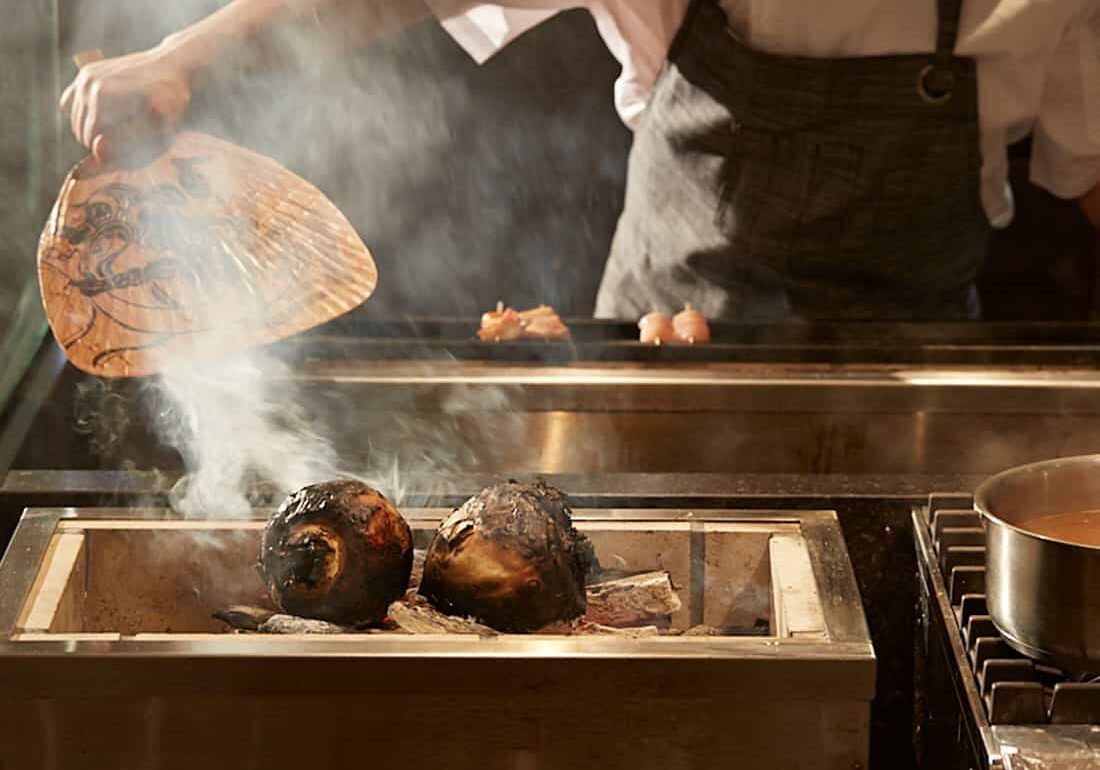 Housed in the CHIJMES, Takada distils experiences from Michelin-starred restaurants in France and combines them with his favourite Japanese grill, to present a 16-course Charcoal-Grilled omakase at Hanazen. Marrying the best of Japanese and French techniques, Hanazen sees an open grill where your skewers are fired to perfection. A seat at the counter will give you the best view of the chefs at work, while the semi-private corner or private room offers more comfort and privacy.