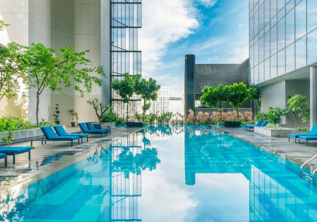 Checking in was a breeze, in every sense of the word, with the lobby flanking the open lawn on the 12th floor. The biophilic hotel strategically integrates lush open spaces that circulate cool breezes around the open areas. Whether lounging at the poolside cabanas or sipping on evening cocktails at the Skyline Pavilion on the club floor (level 21), it always felt nice and airy, almost like we were in an island resort. So lush, we sometimes forget that we are 21 floors above the ground until we catch a glimpse of the spectacular city skyline from the infinity pool. If that is not refreshing enough, head to level 27, where two rooftop pools await all guests. Perfect for relaxing in the water or working up a sweat with Aqua spin classes.