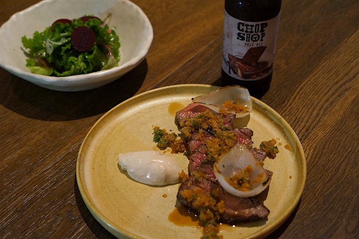 Coming up with a pairing menu is more art than science, but when the Rare Ink Session Stout was pulled out for the grilled second and third courses, we were intrigued, because the next pairing actually goes back to the lighter beer. Purposefully light on the palate, the slight roast character of the stout played well with the char on the chunky Pork Sausages with pickled cabbage, cured egg yolk, and black garlic mayo while the sweet maltiness was best friends with the rich, savoury notes from the Wagyu Bresaola accompanied by earthy portobello, confit egg, and onion jam.