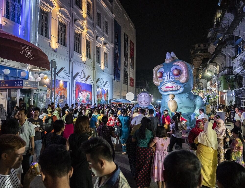 Divided into various zones across food and arts, the festival stretches down the entire length of Yangon’s historic Bogalayzay Street. This is a living, breathing space where locals live and run their diverse trades. With its rustic colonial-style buildings, the street exudes a quiet charm and vibrancy that is hard to match.