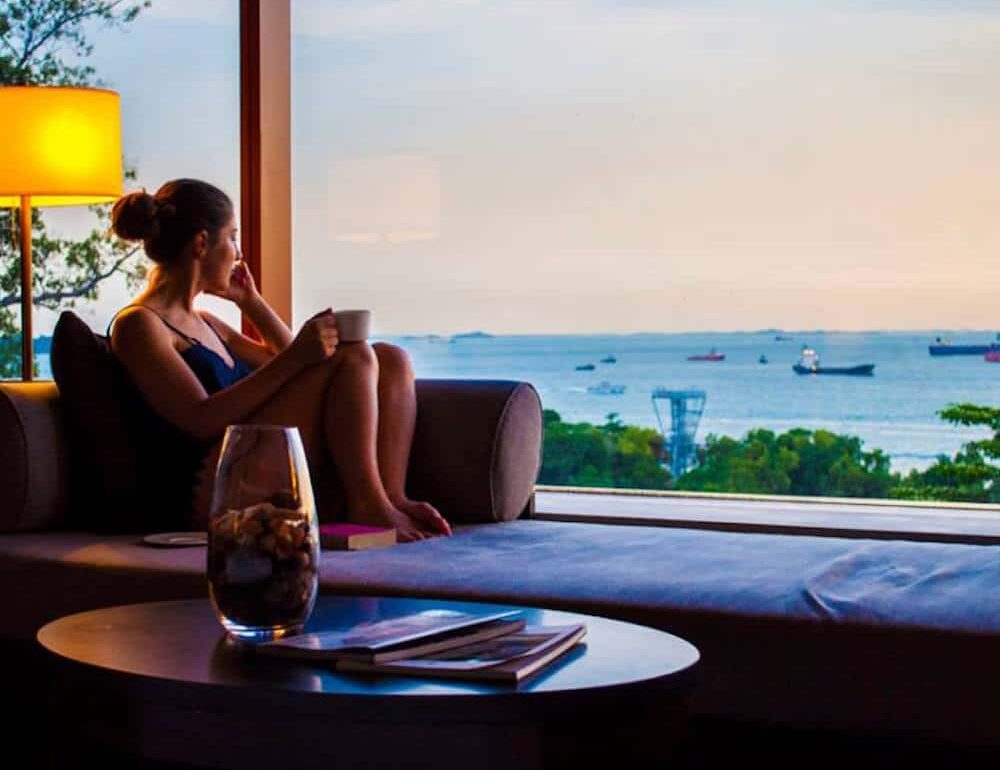 The separate rain shower and bathtub (large enough for two) are adjacent to the balcony to enhance the “outside-in” quality that most Sentosa hotels boast about, and are equipped with amenities from Australian cult skin-care brand Aesop. The double vanity perfectly positioned in front of the walk-in wardrobe also ensures that there’s plenty of space to engage in your toilette. If you’re looking to up the romance factor with this staycation, opt for their Constellation Rooms with an outdoor, private jaccuzzi or a one-bedroom Villa with its own plunge pool. The hotel also has three cascading free form pools by the sea.