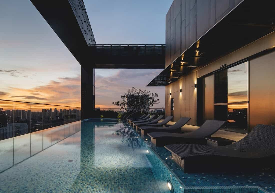 Perched on the 30th floor, the rooftop Sky Pool is a stunner, with eight loungers semi-immersed into the water. Given the pool’s narrowness, it’s clearly more for soaking up the sunset than serious laps – but there’s no denying the views are more than distracting enough.