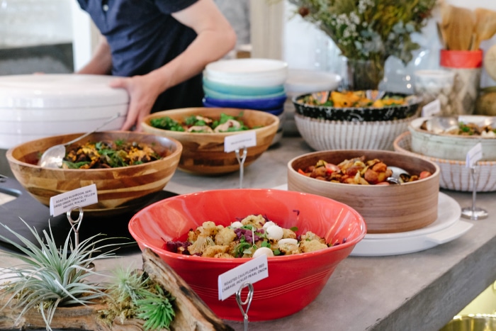 The Grilled Zucchini Salad is marvellous, as is the calculated mixture of Yellow Squash Salad with roasted mushrooms, walnut, and semi-dried green tomatoes. These are excellent vegetables – fresh, crunchy, and charred to a lovely earthy finish. There is also a fragrant Greek-style Rice Pilaf with bits of sharp feta, and some intriguing Kale Tarts that are tastier than they sound. These rotate weekly to keep things fresh for returning customers.