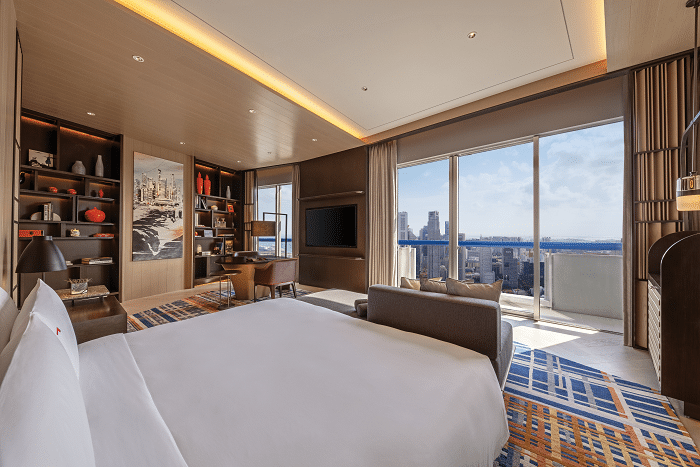 In line with the brand’s focus on wellness, there are six Vitality Rooms across levels 43 to 48. An industry-first, these rooms offer the ultimate relaxation with their experience shower and bath, and smart circadian lighting technology uniquely designed to adapt to your biological rhythm. With interactive digital displays for guided workout routines, an in-room yoga station, a wellness wall outfitted with cable pulls, water pulls and wall bars, as well as a nutritious minibar, there’s no excuse to skip a workout here, especially within the comfort and convenience of your own room.