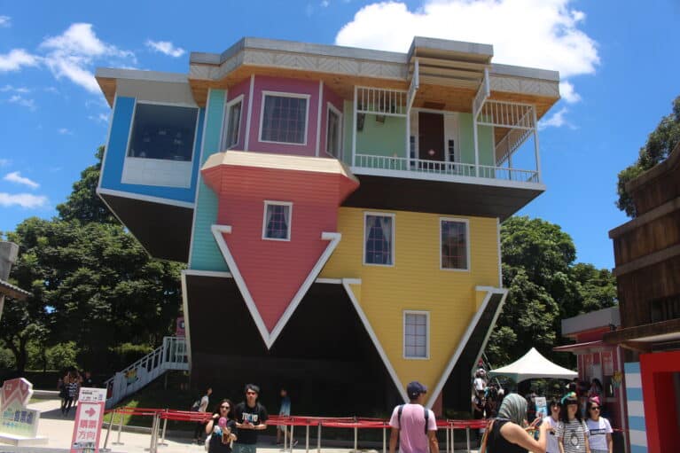 Refuelled, dive into the creative chaos of Huashan 1914 Creative Park, a former sake distillery turned cultural powerhouse. Stroll among ivy-covered warehouses now home to design studios, pop-up installations, experimental bookstores, and even an upside down house! It’s industrial bones with a creative heartbeat.