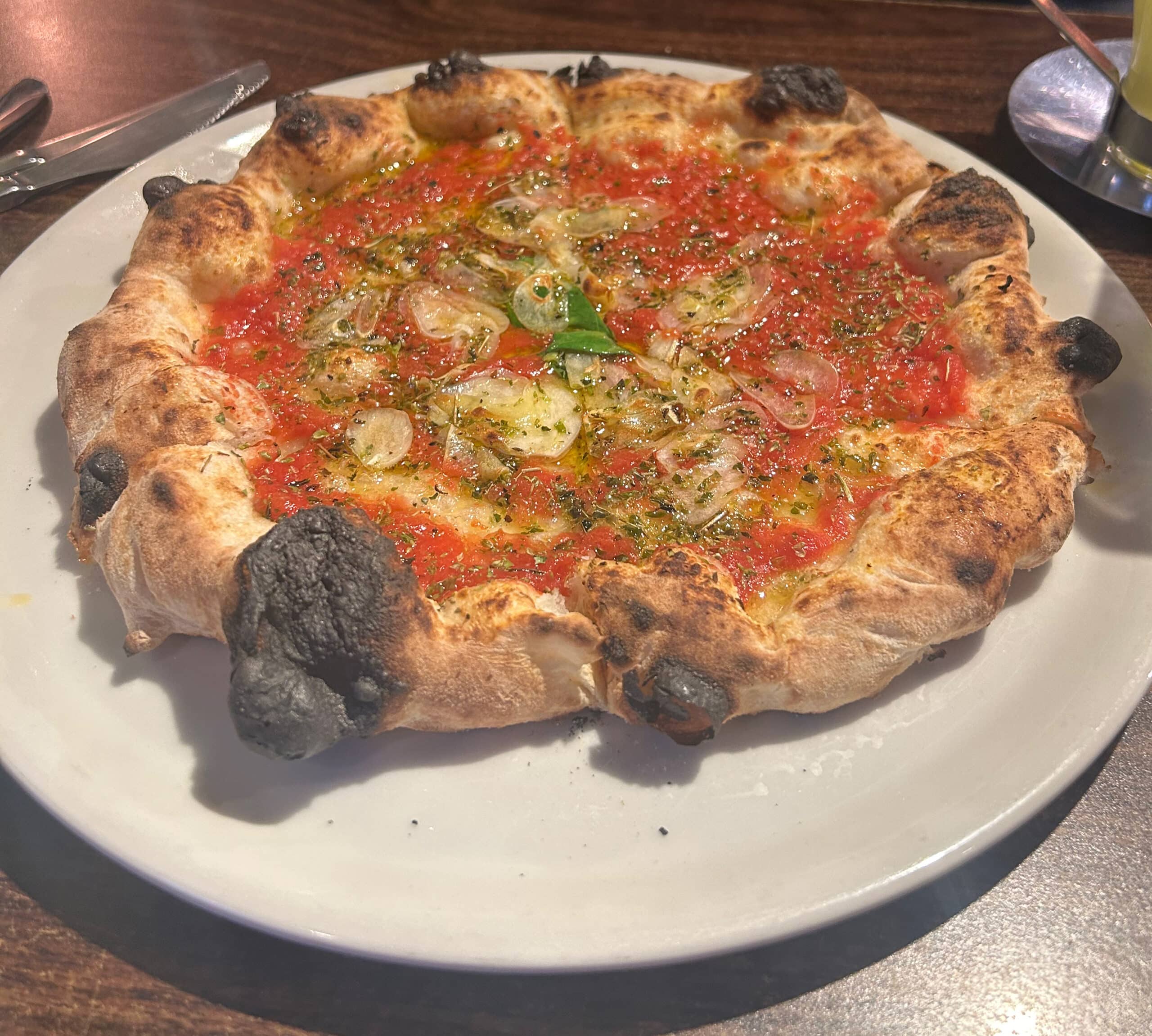 The crust here diverged sharply from what we’d come to expect at places like PST. Denser, chewier, and more traditional in style, it didn’t rely on a bold hit of salt or oil. Instead, it offered a slow-building, deeply satisfying bready umami, a richness that kept building gradually with each chew. It was hearty, grounding, and full of character.