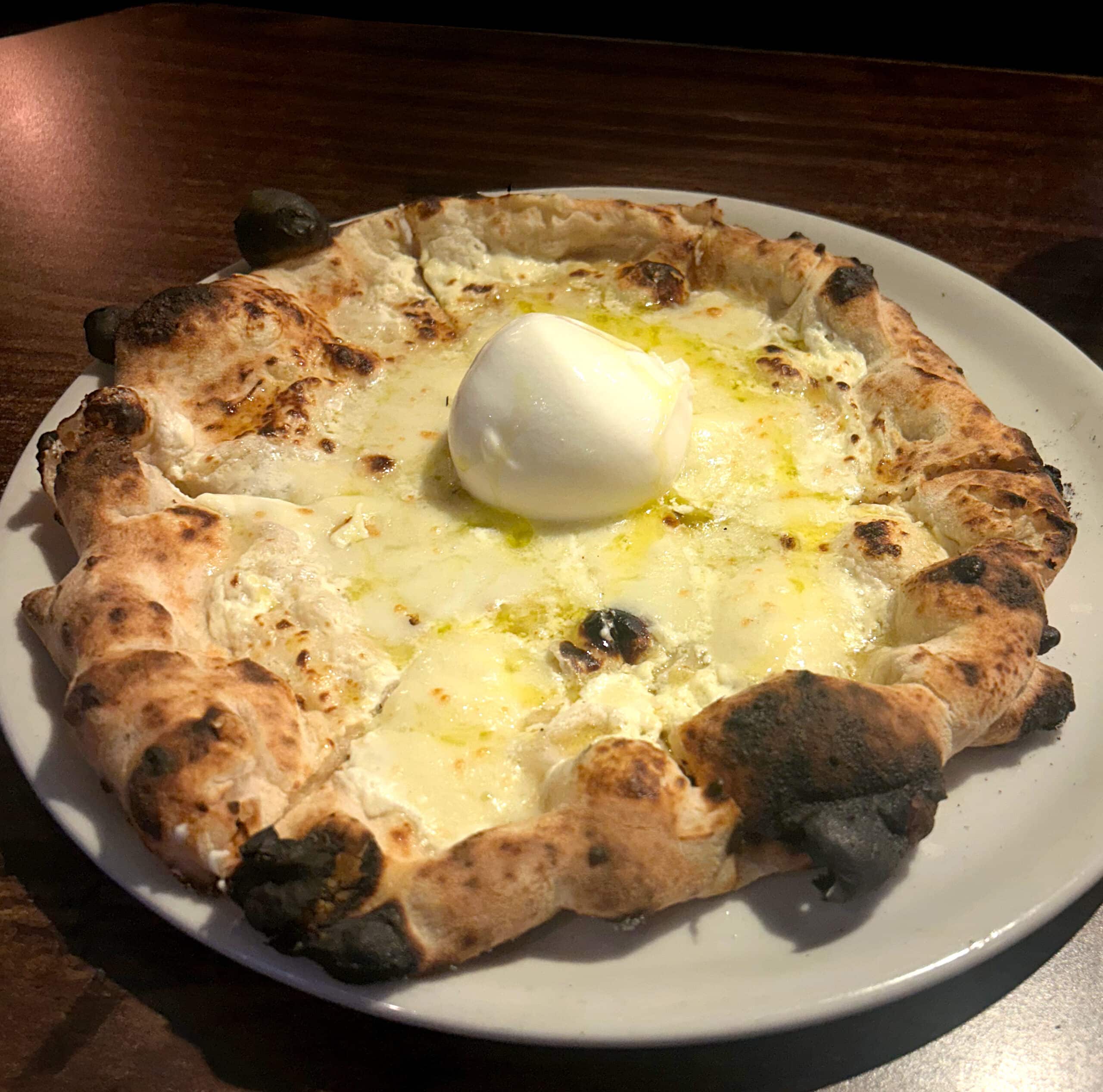 Toppings: Fresh burrata, fresh buffalo mozzarella, mascarpone, white truffle oil