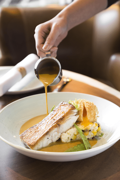 Less heavy is the Fried Green Tomato BLT  ($18), a fresh starter with green tomato, frisée lemon vinaigrette, and pimento cheese bundled with a thick wedge of house smoked pork belly, fixed in place with a healthy dollop of smoky tomato jam. Meaty and tender, the pork belly is a definite show stealer.