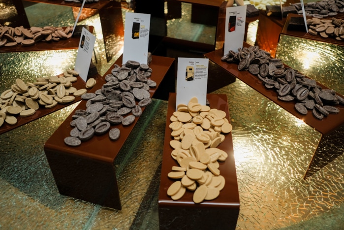 If you’re wondering what kind of chocolate Chef Siddharth uses for his novel creations, look no further than the Valrhona tasting table, which boasts 12 varieties of quality chocolate varying in intensity and flavours – from white to dark and everything in between. These come in small bite-sized coins so you can sample the delicacy in its purest form. For example, there’s the Jivara Lactee 40%, a mild chocolate varietal with notes of caramel, vanilla, and a hint of malt, or the Abinao Feve 85% – dark, sophisticated, with an intense aroma and tinge of bitterness.