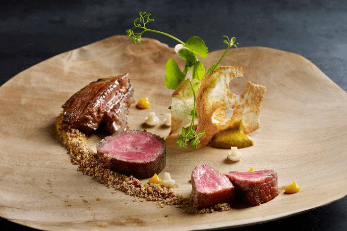 Decked in cobalt blue paneling and glinting gold accents, Butcher’s Block is way more chic than your usual dark-hued chophouse. Along one wall stretches a gleaming, hundreds-strong display of natural wines; the opposite wall frames an open kitchen, where Chef Rémy Lefebvre sears up sustainably-sourced steaks over a wood fire. For sharing, there’s a well-marbled Rangers Valley Wagyu WX MBS 7 Côte de Boeuf  (S$299 for 1.2kg) that practically melts on the tongue; for smaller cuts, think the flavourful Angus Grass-Fed 28D Dry-Aged Irish John Stone sirloin (S$118 for 450g). Check out our review here.