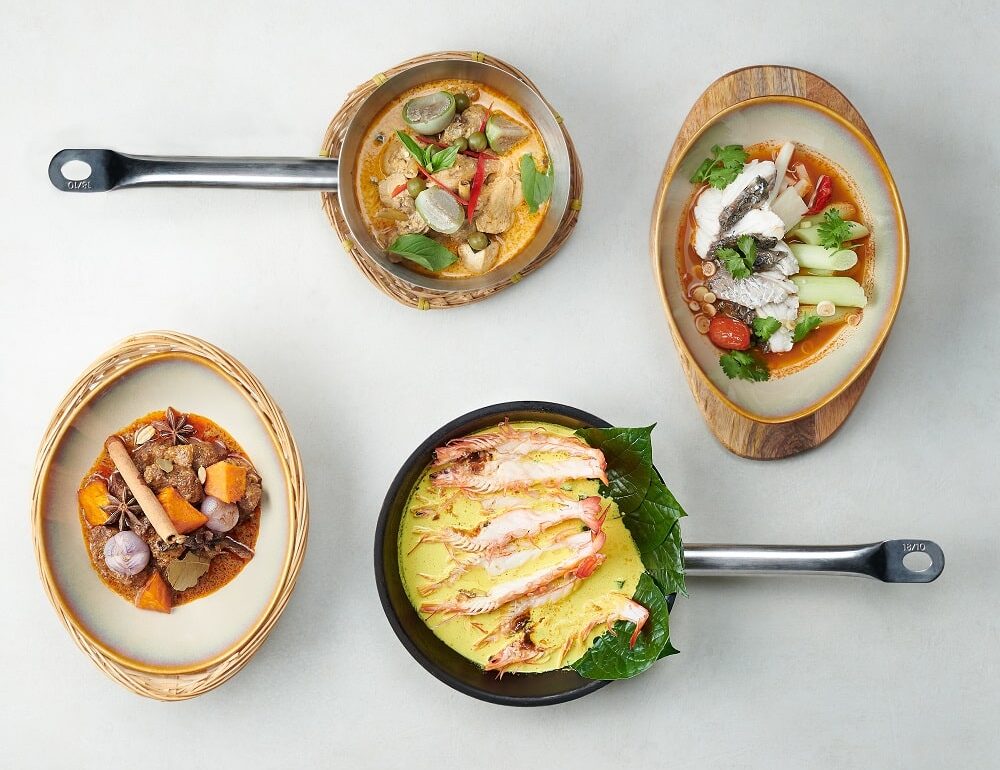 Halal Thai restaurant Blue Jasmine presents a new a-la-carte menu showcasing flavours of lesser known regional specialties from Thailand. For starters, the Cha-Om Fried Egg ($12) comes accompanied by a classic spicy Thai dip based on fermented shrimp paste. Try the traditional Thai soup Poh Tek ($20) made with deep-fried sea bass, or opt for the creamy and herbaceous Yellow River Prawn Curry ($26) with fresh turmeric and betel leaves.